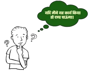 आज्ञा-पालन दण्ड के भय पर आधारित है। बच्चों को नैतिकता का वास्तविक ज्ञान नहीं होता। वे दण्ड की शक्ति रखने वाले व्यक्तियों के प्रति अन्ध-श्रद्धा रखते हैं। उन्हें दूसरों के अधिकारों का कोई ज्ञान नहीं होता। “जिसकी लाठी उसकी भैंस” वाली स्थिति होती है। इस अवस्था में बच्चा अपने आप को कठिनाई से बचाने को प्राथमिकता देता है। इस प्रकार वह उत्पीड़न तथा अपनी स्वतन्त्रता में आने वाली बाधाओं से बचने का प्रयास करता है। पियाजे (Piaget) ने इस अवस्था को वस्तुपरक उत्तरदायित्व (Objective responsibility) की अवस्था कहा है। कोलबर्ग का विचार है कि बालक द्वारा मान्य व्यवहार अपनाने का कारण पुरस्कार प्राप्त करना तथा दण्ड से बचना होता है। इस अवस्था में बालक ठीक अथवा गलत व्यवहार में भेद बड़ों की स्वीकृति एवं अस्वीकृति के आधार पर करता है।